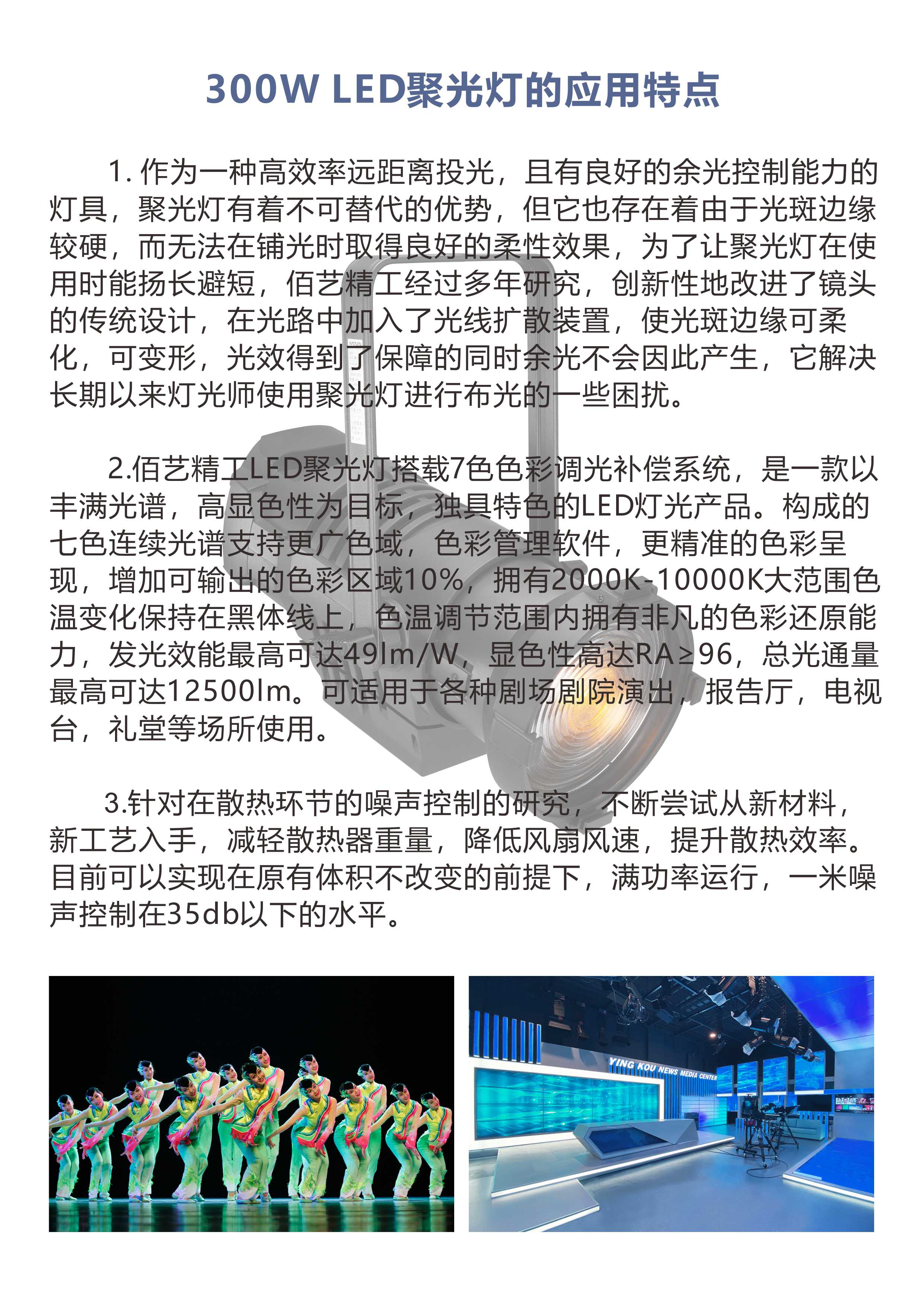 专业影视级光学设计、低噪音、长续航,高度适配电视台演播室、新闻访谈录制、直播间补光、展厅文物展品布光、影视摄影摄像等专业场景,是演播影视空间高端主力柔光聚光灯具。