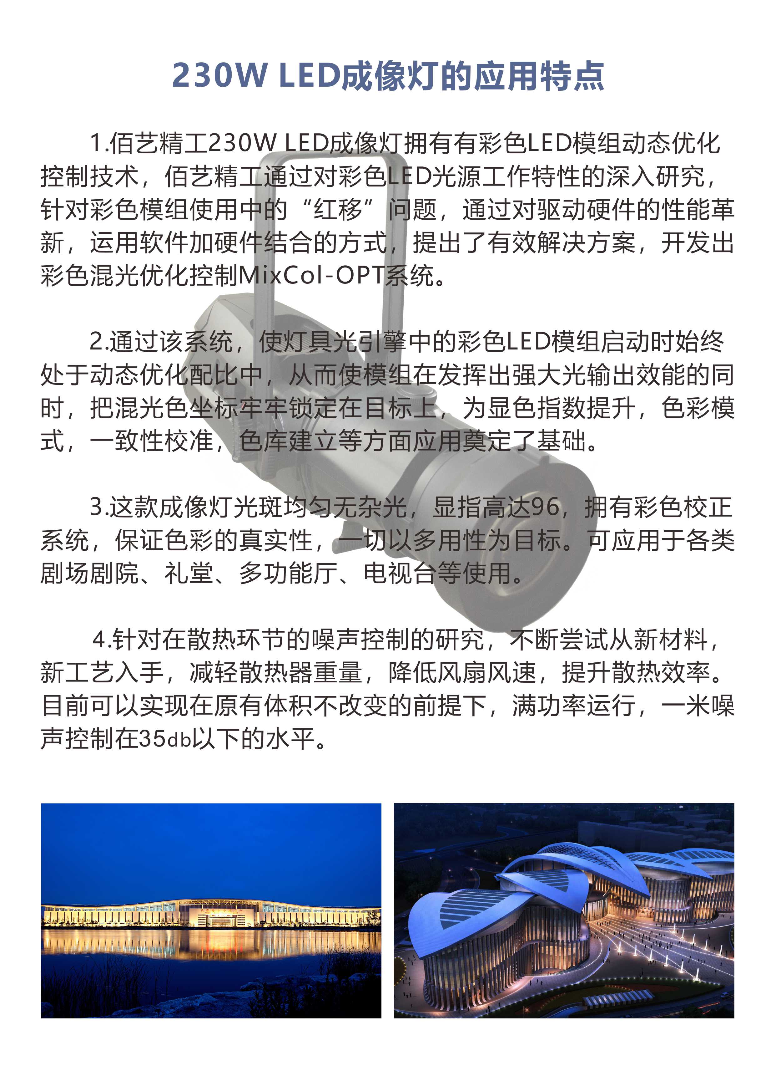 V23P系列成像灯,提供3200K/5600K/双色温/5色光源选择,采用先进光学设计,呈现均匀纯净的无杂质光斑,显色指数高达96,真实还原物体色彩本貌。突破性数字化自定义色库,精准呈现任意设置的指定色坐标。配置互换式光学配件。配套多种定焦、变焦镜头,为舞台设计提供灵活的布光选择,可应用于各类剧场剧院、礼堂、多功能厅、电视台等使用。