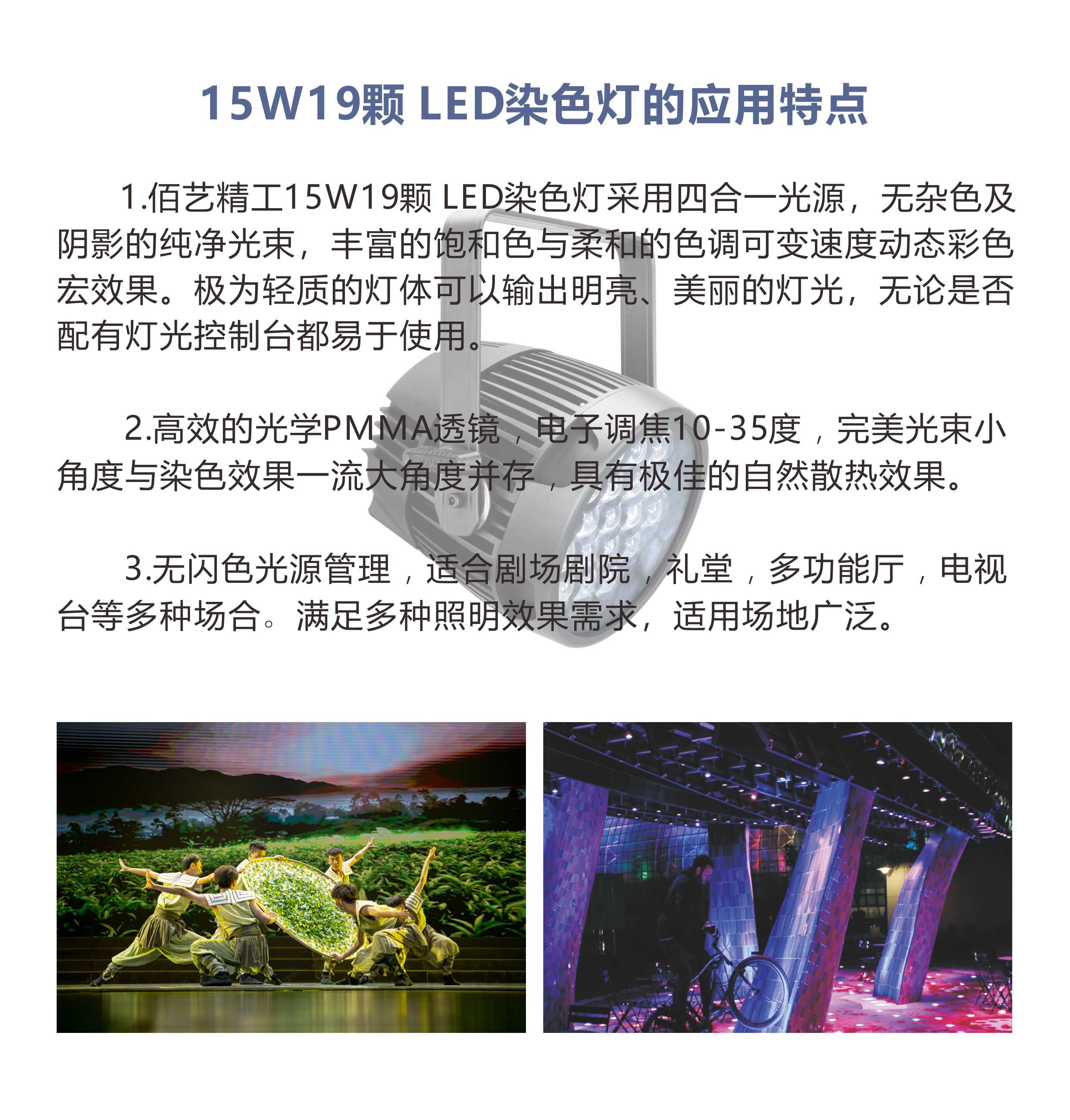 这款变焦LED染色灯采用先进的光学系统及电子变焦功能,变焦角度为8-34°,变焦快速且平稳;4合1LED光学技术,稳定,光效的光输出及具有完美的混色效果,小角度光感极强,光束干净且运行速度快,大角度出光颜色纯正,渲染浓郁,舞美可塑性强;超速变焦,调焦功能通过外力推动透镜进行远近活动来实现灯具的出光角度。